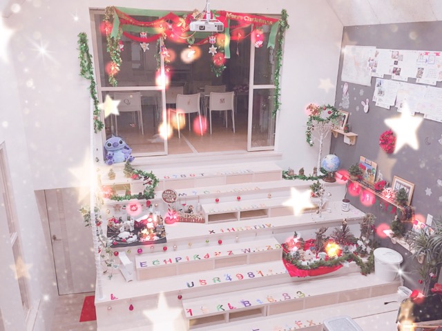 教室の大階段のデコレーションスポット!ハロウィン期間は教室の至る所にジャックオランタンがあります(๑・̑◡・̑๑)